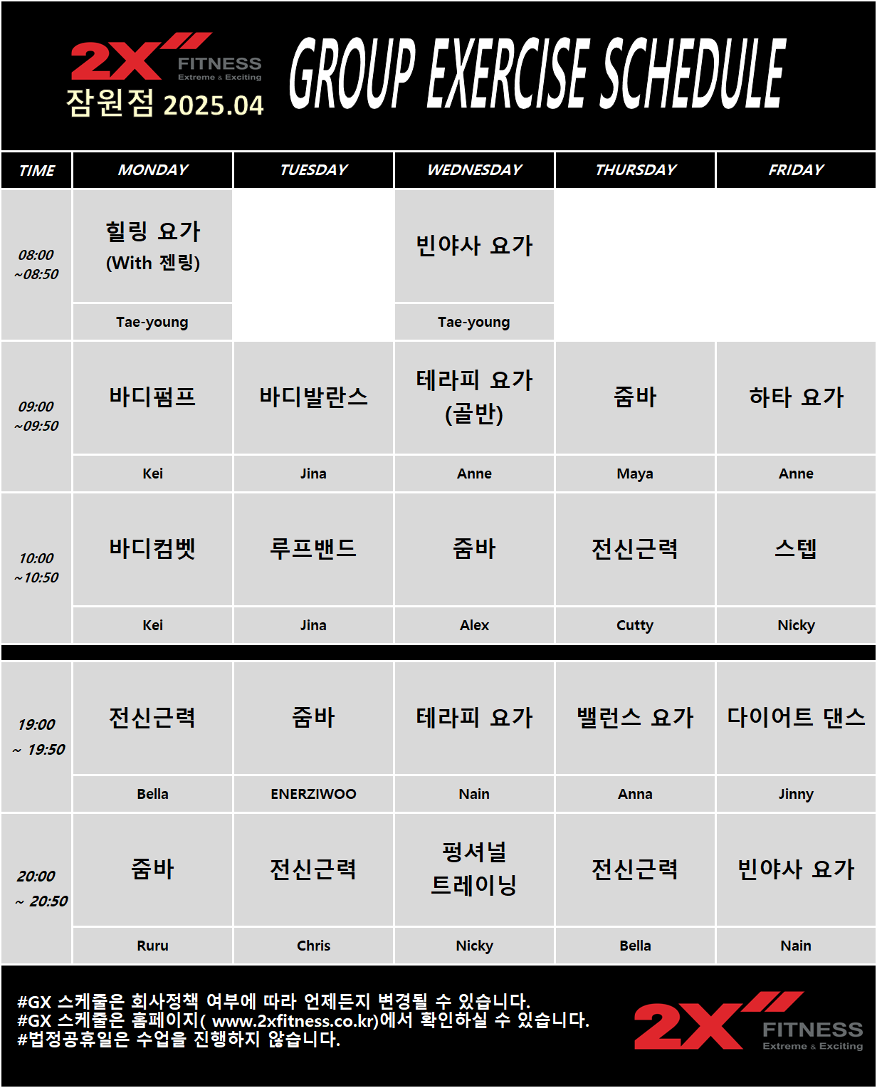 GX Schedule