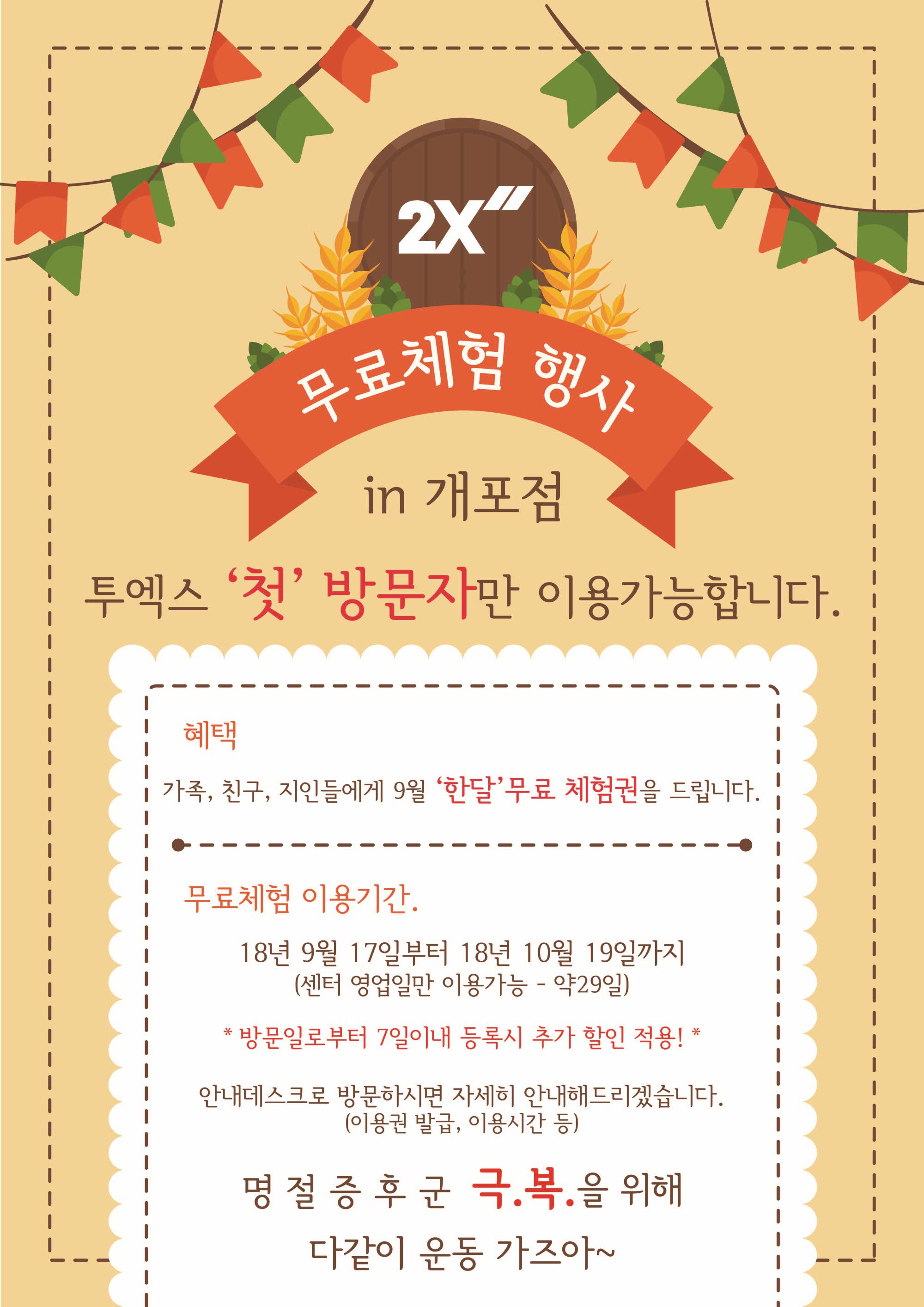 무료체험 행사투엑스 개포점"첫 방문자"만 이용가능10월 19일까지~